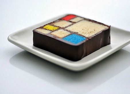 Mam wrażenie, że z tego testu obronną ręką wychodzi Mondrian. Ciasto upieczone na wzór jednego z obrazów malarza wygląda wyjątkowo atrakcyjnie. Prace Mondriana stały się tez inspiracją np. dla Yves-Saint Laurent’a, który zapożyczył wzór z prac holendra i umieścił na tkaninach sukienek. Jednak nie wiem, czy powinnam chwalić Mondriana, w końcu to on zapoczątkował tę niezrozumiałą dla mnie fascynację prostymi kształtami, wzorami i psuciem sztuki klasycznej. Wydaje mi się, że nadawałby się na projektanta, bo zdecydowanie miałby do tego predyspozycje. Projektowane przez niego wzory niewiele różnią się przecież od znaku towarowego firmy Burberry, jakim jest charakterystyczna kratka.