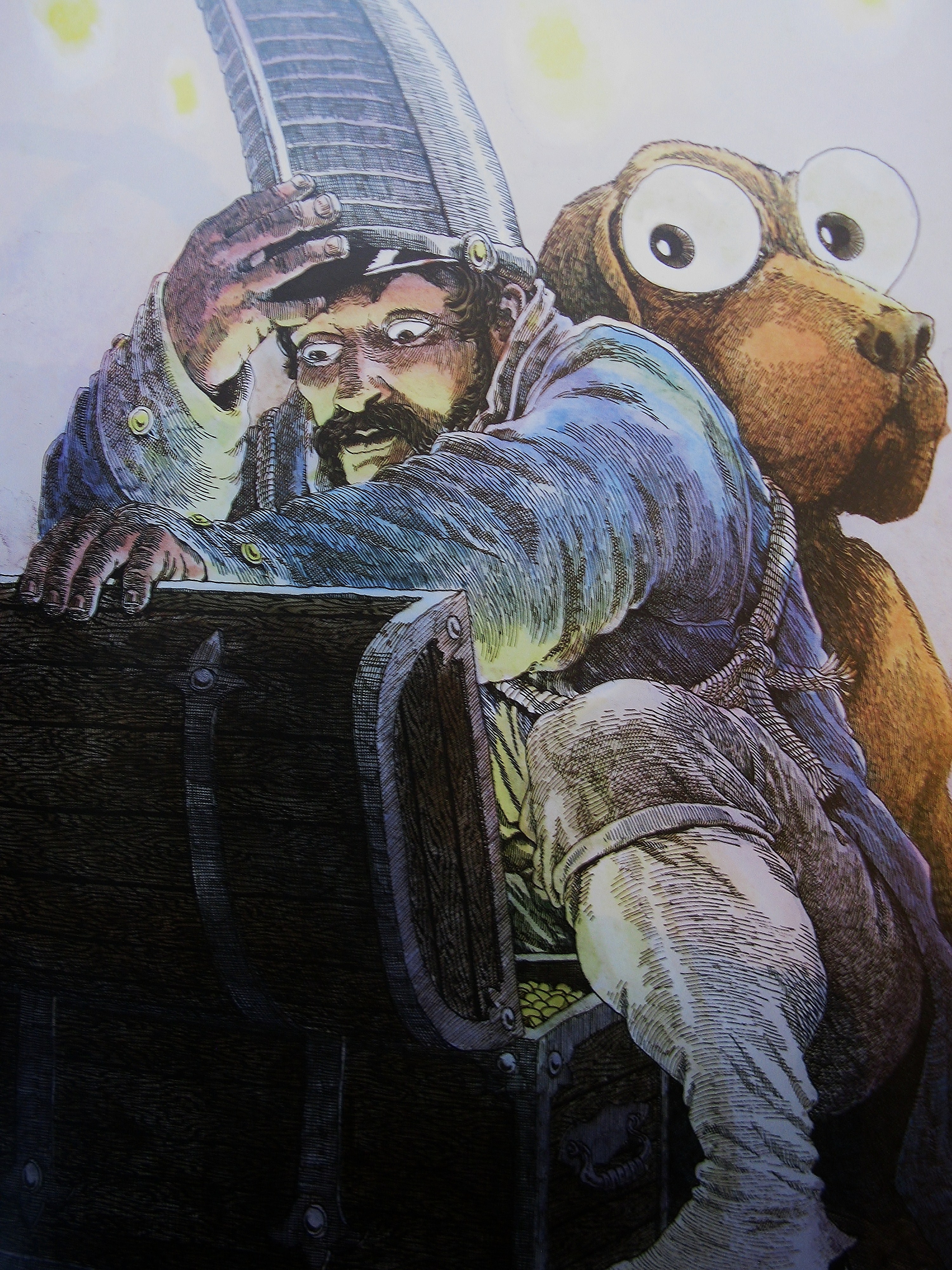 1. Mnie chyba z zaprezentowanych prac najbardziej przyciągają te autorstwa Shaun Tan. Pełne niesamowitości. Pamiętam z dzieciństwa pierwszą książkę, którą przeczytałem: Momo autorstwa Michael’a Ende. Podtytuł brzmiał: „czyli osobliwa historia o złodziejach czasu i o dziecku, które zwróciło ludziom skradziony im czas”. Pamiętam, że ci złodzieje czasu byli w środku książki bardzo sugestywnie narysowani, rysunki były czarnobiałe, co tylko pogłębiało wrażenie posępności tych istot. Aha, i oni cały czas palili wielkie cygara, a wokół nich kłębił się dym jak z kominów.. 🙂 Chyba muszę wrócić do tej książki i przeczytać ją ponownie, tak żeby sobie odświeżyć te wizje z dzieciństwa.. 😉 Pamiętam, że bardzo mądra była to książka, swoją drogą. (takie lubię – jednocześnie niesamowite/surrealistyczne i mądre życiowo, swoją drogą z tych samych powodów już od dawna uwielbiam twórczość Harukiego Murakamiego – przeczytałem już prawie wszystko i moim numerem jeden cały czas jest książka, od której przygodę z nim zacząłem, czyli „Tańcz, tańcz, tańcz” – bardzo gorąco polecam!) 🙂