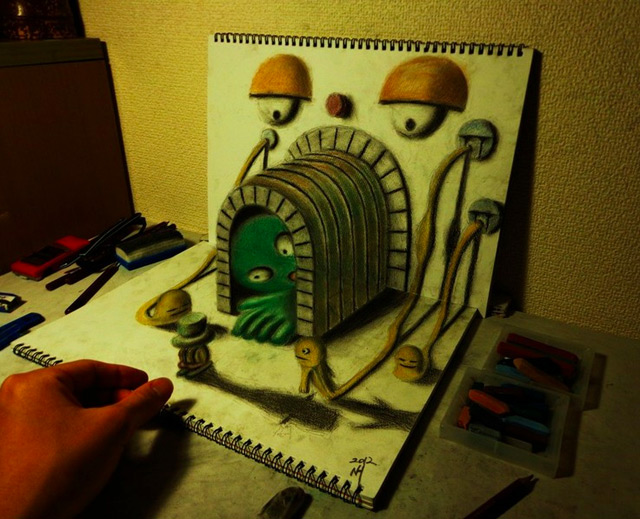 W internecie można znaleźć prace wielu twórców z całego świata, którzy są zafascynowani trompe l’oeil i tworzą prace sprawiające wrażenie trójwymiarowości. Poniżej prace Nagai Hideyuki