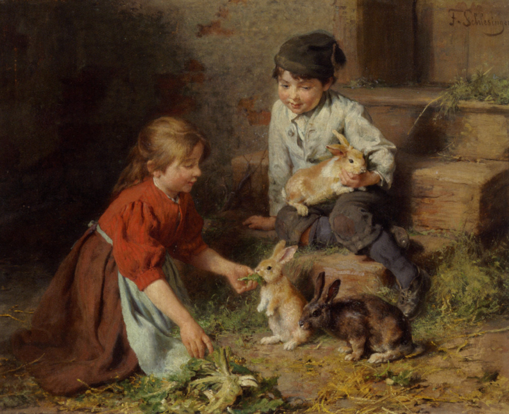 Na koniec prace dwóch niemieckich malarzy, tworzących na przełomie XIX i XX wieku: Felix Schlesinger (1833-1910) i Hermann Kaulbach (1846- 1909). Są przedstawicielami malarstwa rodzajowego, a ogromna ilość ich prac pokazuje dzieci z królikami.