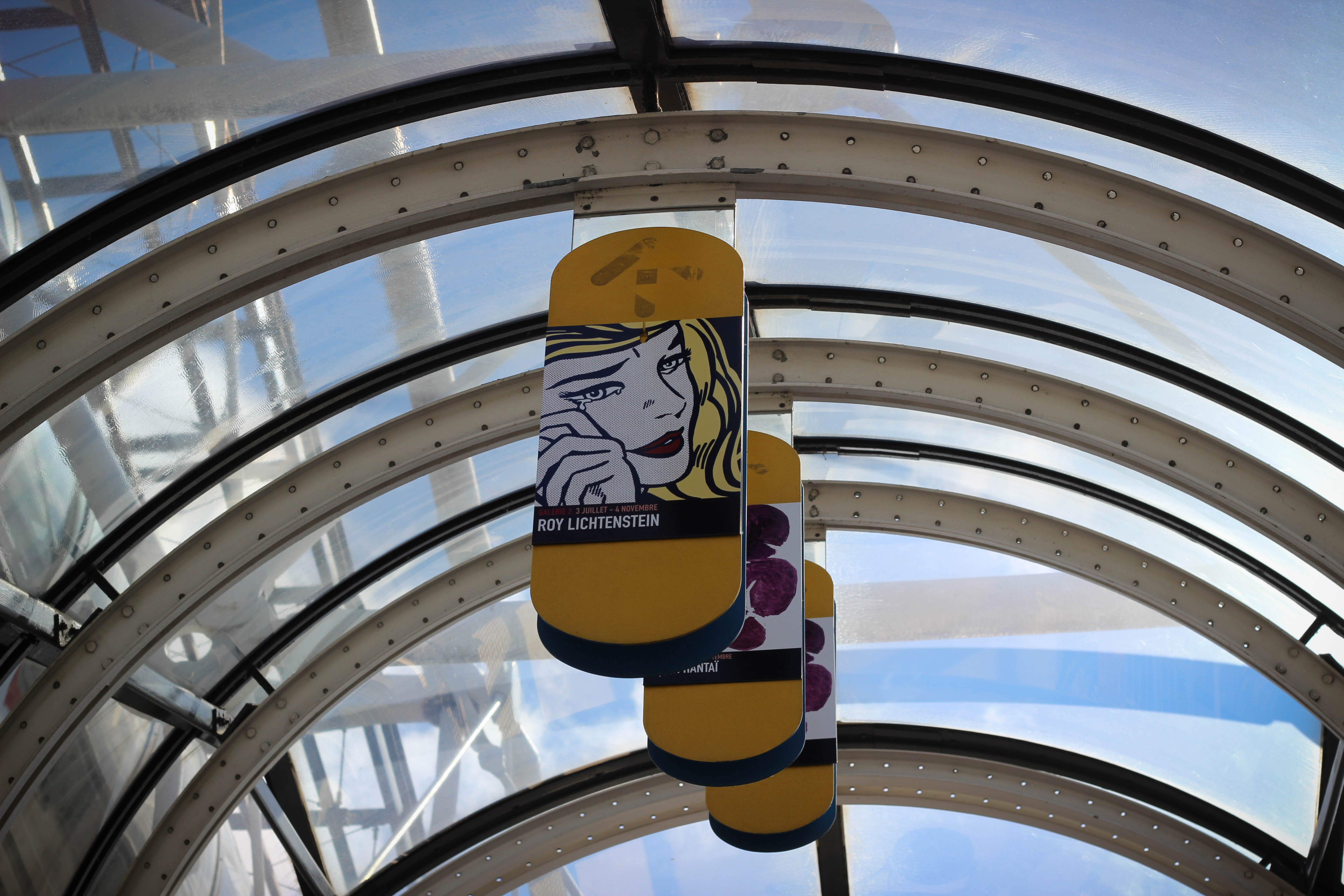 W Centre Pompidou w dniach 03.07-04.11.2013 można oglądać wspaniałą i dobrze przemyślaną retrospektywną wystawę prac amerykańskiego artysty, na której znajduje się ponad sto jego prac (obrazów i rzeźb). Kolejne sale wystawy grupują prace Amerykanina w sposób chronologiczny, ale przede wszystkim- tematyczny. Dzięki temu odbiorca widzi, w jaki sposób zmieniały się zainteresowania Lichtensteina i jego styl. Z jednej strony artysta reinterpretował na swój sposób różne avant-gardowe ruchy artystyczne, a z drugiej był postmodernistycznym twórcą, który w dużej mierze czerpał z dorobku sztuki klasycznej, uciekając się do takich form jak pejzaż, martwa natura czy akt.