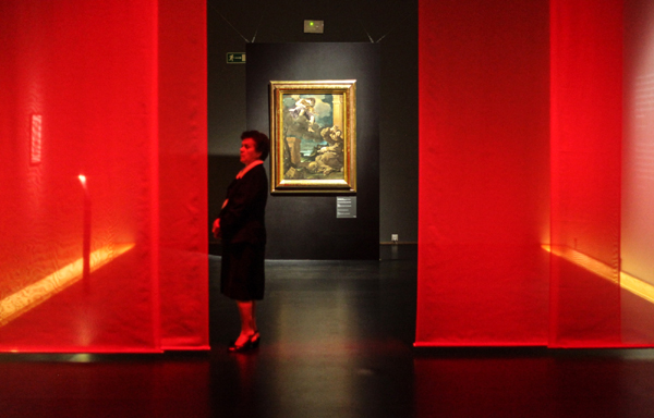 Co ciekawe, w tych ostatnich salach zmienia się także otoczenie obrazów. Kudlicka zastosował kolorowe, czerwone światła oraz półprzezroczyste płachty czerwonego materiału, które dobrze komponują się z kolorystyką obrazów i kontrastują z ciemnym kolorem ścian.
