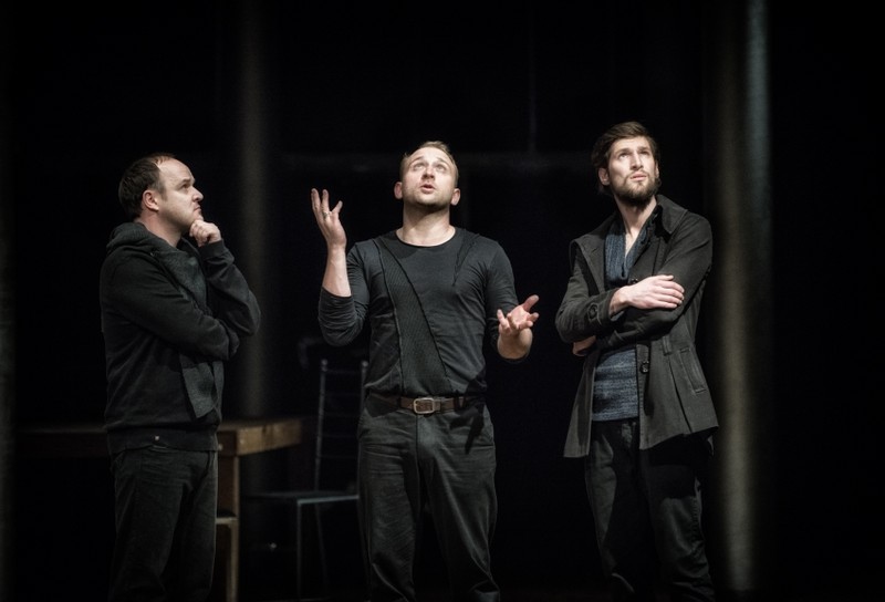 Kreacja Borysa Szyca (w roli tytułowej) była niesamowita. Przyznam, że byłam ciekawa, jak sobie poradzi z tą trudną, dramatyczną rolą. Zagrał- jak zwykle- znakomicie i „po swojemu”. Nadał bohaterowi momentami nieco komediowy charakter, co mogłoby się wydawać dziwne, ale wypadło doskonale. Inną genialną kreację stworzył po raz kolejny Sławomir Orzechowski (Poloniusz). W pierwszej części byłam nieco zawiedziona Andrzejem Zielińskim, który zdawał mi się trochę „sztywny” jako król Klaudiusz (i zdawało mi się, że nie do końca wynikało to z roli, którą grał, a raczej z walki z tekstem), jednak po przerwie wrócił pozytywnie odmieniony. Mały epizod (grabarza) zagrał Krzysztof Kowalewski. Uważam to za niezwykłe, że z tak niewielkiej w gruncie rzeczy roli można zrobić prawdziwą perełkę. Kowalewski dowiódł już nieraz, że niezależnie od roli, którą gra, potrafi skupić na sobie uwagę widza i odegrać ją perfekcyjnie. Świetny okazał się także Michał Mikołajczak w roli Horacego, przyjaciela Hamleta.