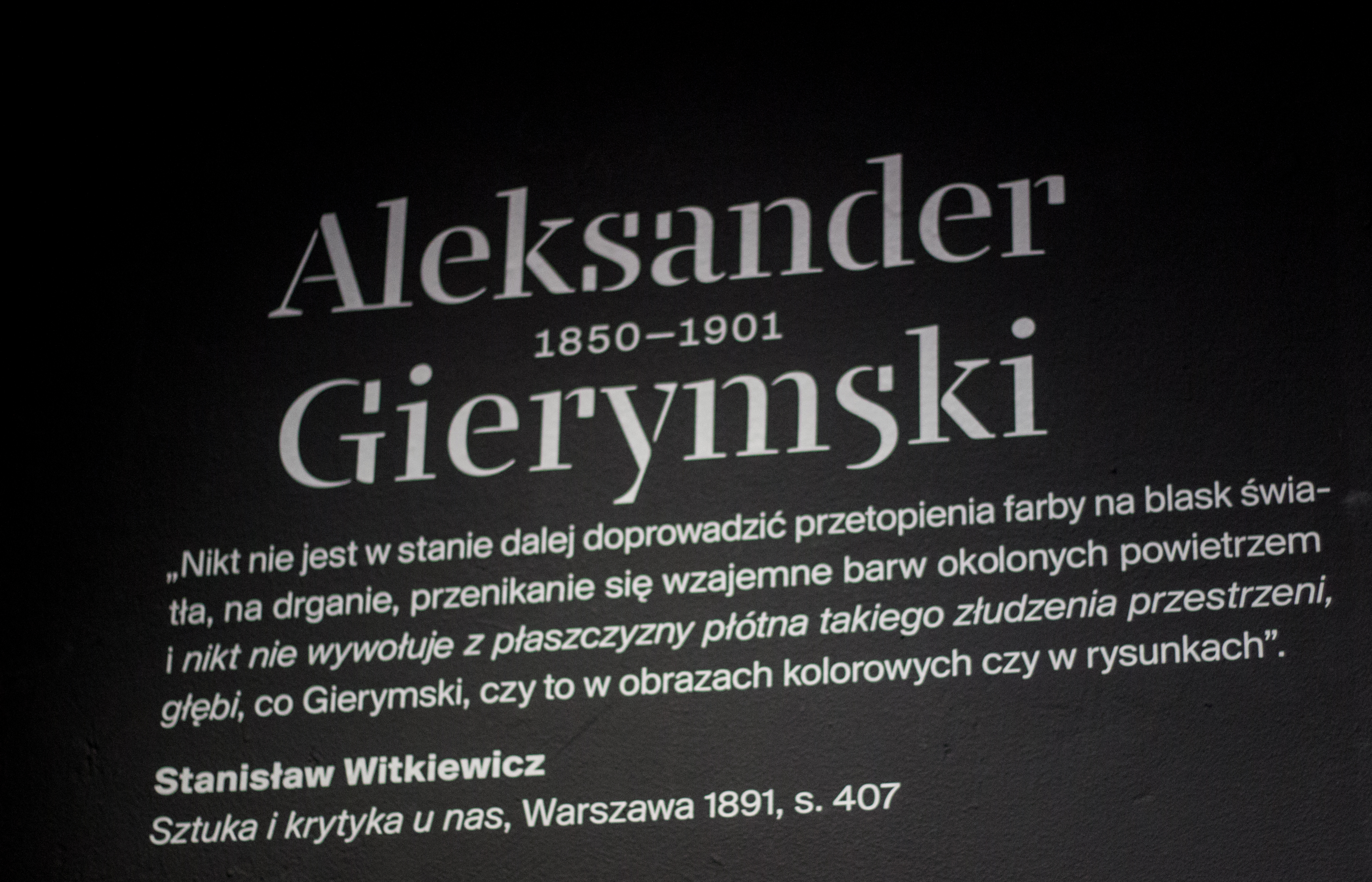 Uważam, że wystawa w Muzeum Narodowym pozwala nie tylko zaznajomić się z pracami artysty, ale także zrozumieć jakim człowiekiem był Aleksander Gierymski. Patrząc na jego twórczość, wyłania się z niej obraz Gierymskiego jako ogromnego perfekcjonisty, a także pokazuje jego nowatorskie podejście do malarstwa. O tym pierwszym świadczą liczne studia olejne i szkice, które można zobaczyć na ścianach przy wybranych obrazach. Dzięki temu, że możemy poznać historię powstawania dzieła i po uważnemu przyjrzeniu się płótnom widzimy, że artysta niejednokrotne przemalowywał obrazy, a także wycinał i przyklejał fragmenty płótna, aby poprawić kompozycję. Z jego prac wyłania się także obraz Aleksandra Gierymskiego- artysty „poszukującego”. Poszukującego nowych tematów i inspiracji (co niejednokrotnie było mu wypominane). Był także artystą zaangażowanym w sprawy społeczne, który nie bał się przebywać wśród ludzi z niższych warstw społecznych i potrafił dostrzec w ich codzienności coś niezwykłego. Co tu dużo mówić- bardzo polecam tę wystawę! Potrwa ona do 10 sierpnia bieżącego roku , podobnie jak druga część projektu „Bracia Gierymscy”, czyli „Maksymilian Gierymski. Dzieła, inspiracje, recepcja” w Muzeum Narodowym w Krakowie.