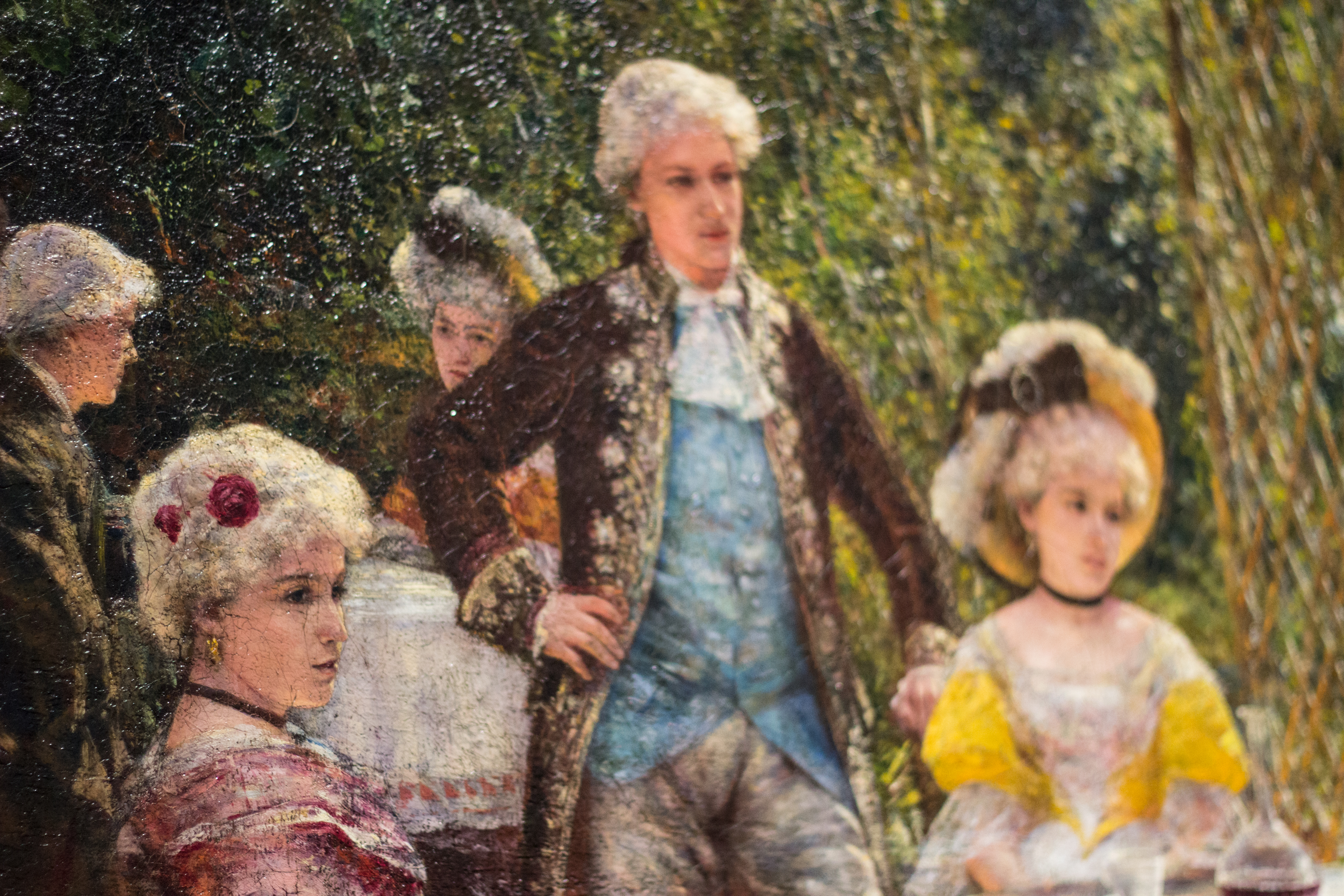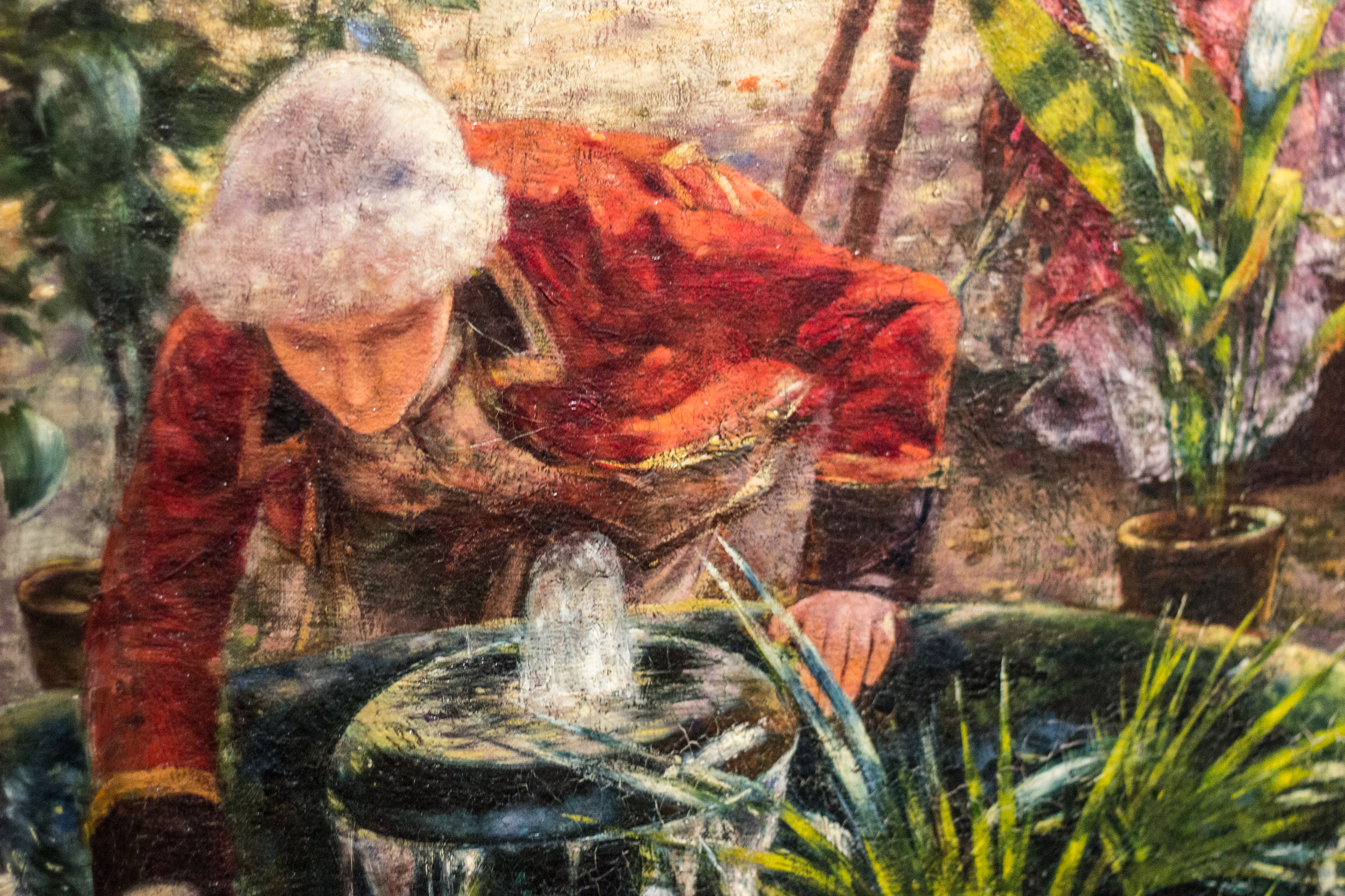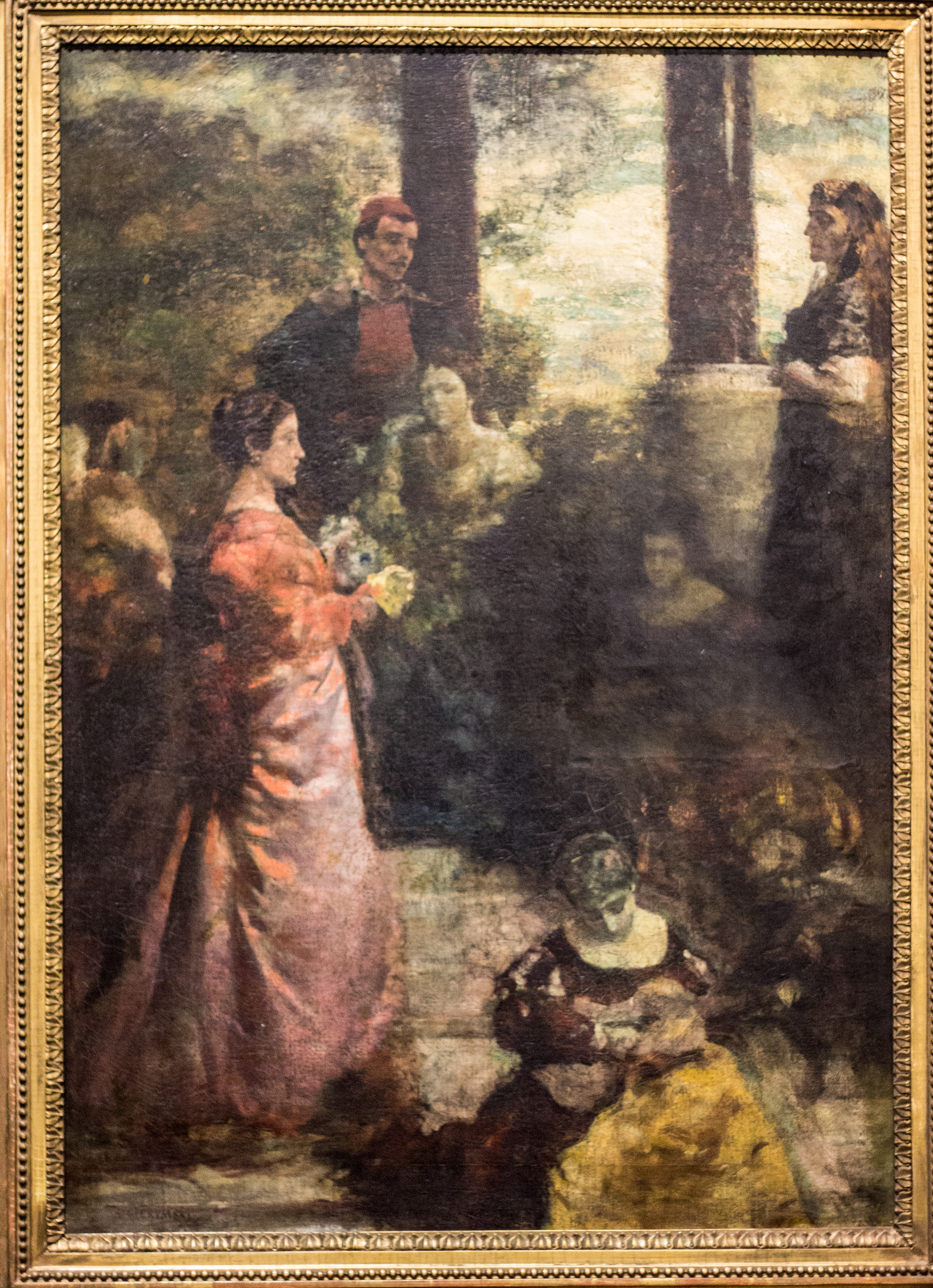 W kolejnej sali wystawy możemy zobaczyć dwie wersje obrazu „Sjesta włoska” (1878). Tematyka i kolorystyka dzieła przywodzi na myśl prace twórców renesansu- Tycjana i Tintoretto. Widać, że artysta odszedł tu od akademickiej „gładkości” i lśniącej powierzchni płótna, nakładał farby tak, aby powierzchnia tworzyła swego rodzaju fakturę. Zauważalny jest także brak konturów- przedstawione postaci zostały stworzone za pomocą barwnych plam.