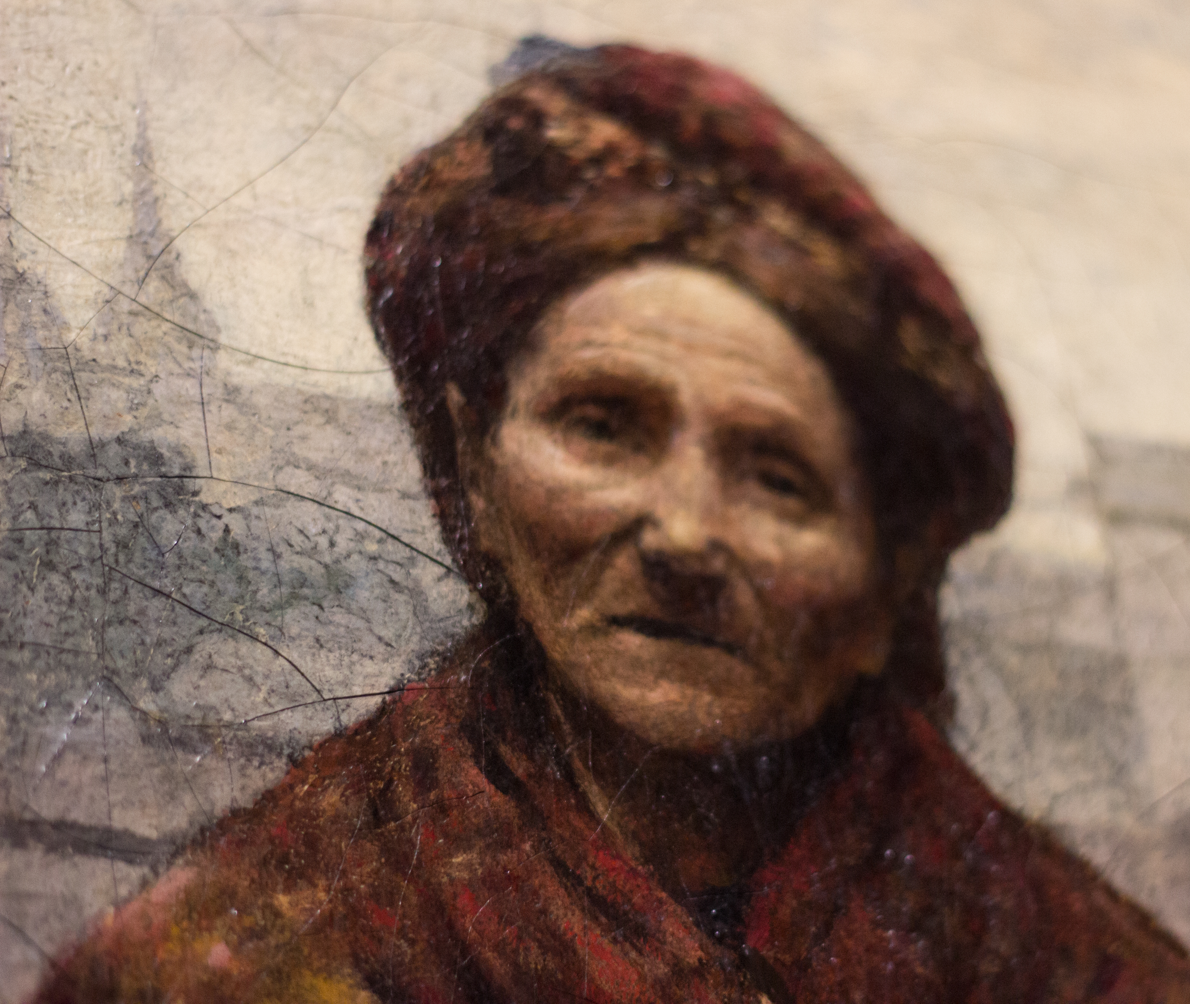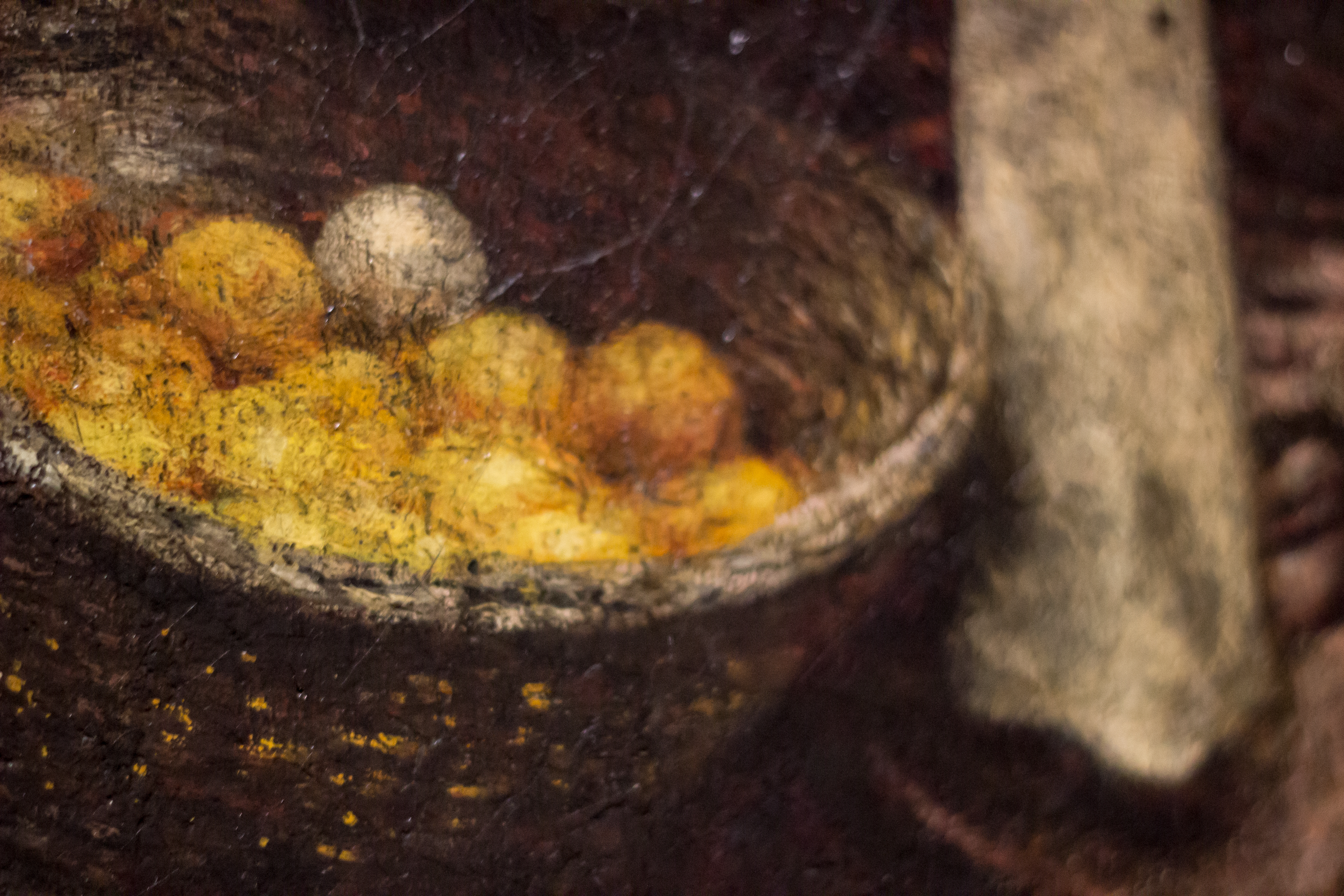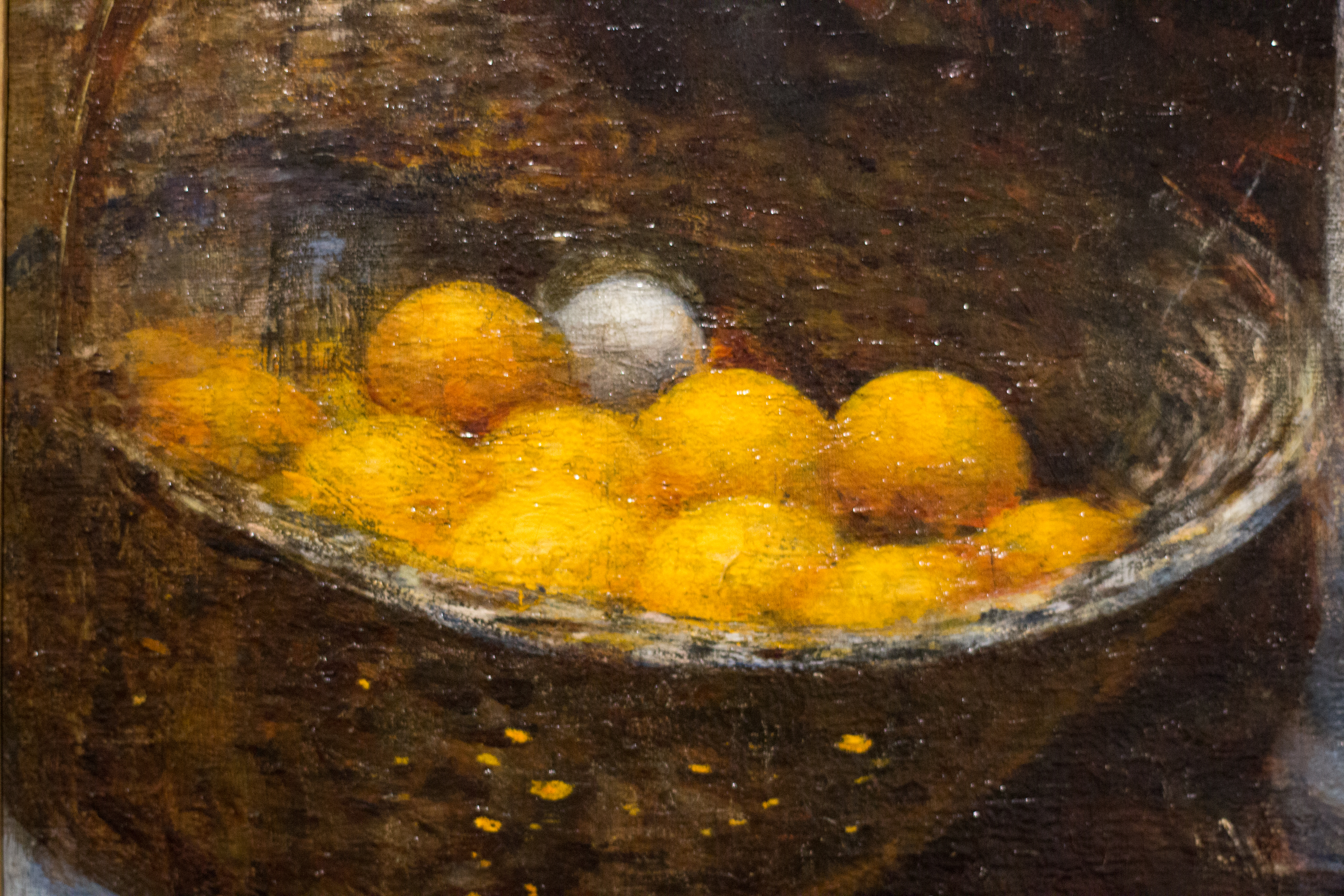 Poniżej porównanie całości i fragmentów dwóch obrazów. Wyżej- Żydówka z pomarańczami (obraz po renowacji), niżej Żydówka z cytrynami: