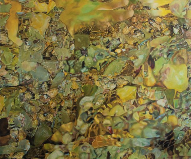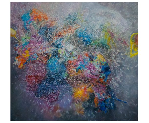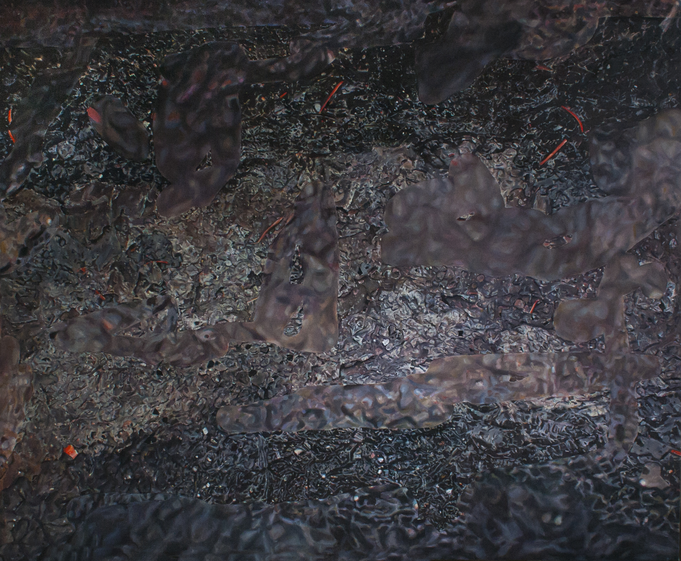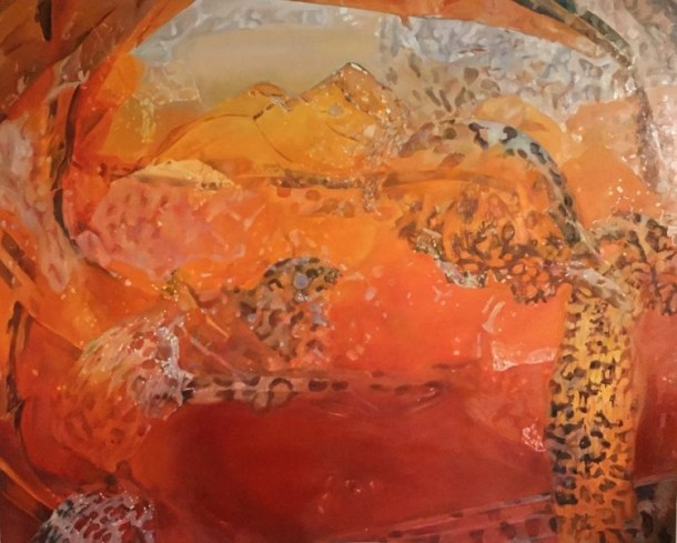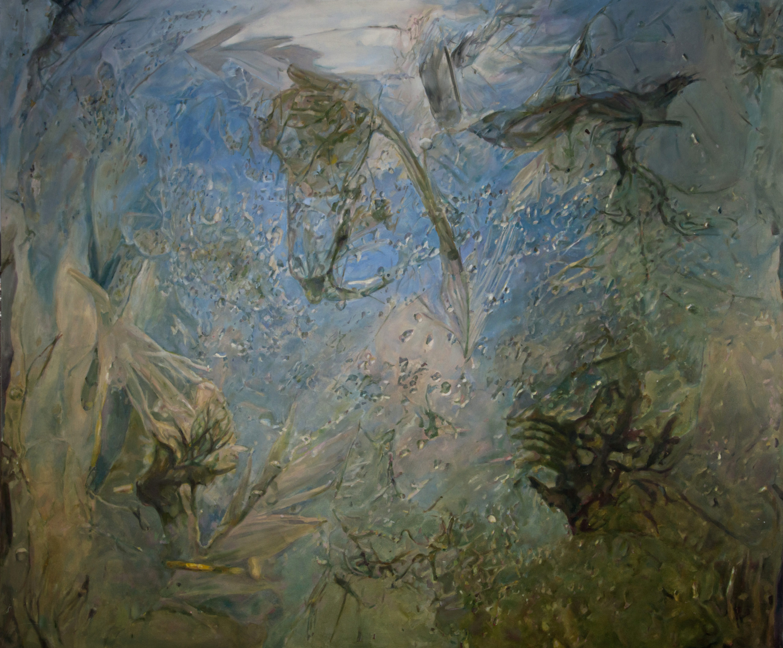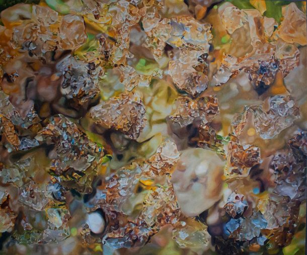 Tak, właśnie na tym bardzo mi zależało. Zawsze mówię, że tworzę abstrakcje z rzeczywistości, w pewien sposób ją dekonstruując. Podczas malowania serii obrazów z lustrami zaczęłam sobie aranżować otoczenie. Jest to pewne nawiązanie do holenderskich martwych natur. Malarze już wtedy generowali sobie rzeczywistość specjalnie po to, żeby namalować obraz. Ja poszłam właśnie trochę w tym kierunku, ale w pewnym sensie „we współpracy z naturą”. Zaczęłam budować instalacje, robiłam szkice i zdjęcia, prowokowałam pewne naturalne procesy po to, żeby namalować obraz. U podłoża zawsze jest pomysł, w jaki sposób dany obraz ma wyglądać, a następnie szukam jego odzwierciedlenia w realnym świecie. Te procesy wyglądają bardzo różnie- od przetapiania plastiku metodami recyklingu, po zamrażanie i tworzenie bardzo skomplikowanych struktur i zabaw optycznych. Wzbudzam na przykład proces radiacji, który następnie pokazuję w obrazie. Od jakiegoś czasu, zupełnie świadomie, zaczęłam wiązać to z naturą i podążać za jej procesami. Odnoszę się na przykład do stanów skupienia. Bardzo zależy mi na tym, żeby obraz działał jak zjawisko na pograniczu tego, co znamy i czego nie znamy. Chodzi mi o to, żeby była to kompozycja, której nie jesteśmy do końca w stanie sobie wyobrazić, ale jest skonstruowana z elementów, które każdy w jakiś sposób kojarzy, zna. Chcę, by było to przetworzone w taki sposób, żeby nie było rozpoznawalne na pierwszy rzut oka, ale jednocześnie dawało iluzję rzeczywistości. Teraz rozpoczęłam nowy cykl, w którym odnoszę się do zagrożonych gatunków i także bawię się właśnie w dekonstrukcję. Jest to trochę rozpoznawalne, trochę znajome dla odbiorcy- na przykład widać ubarwienie zwierzęcia, ale nie do końca wiadomo, czym dokładnie to jest.